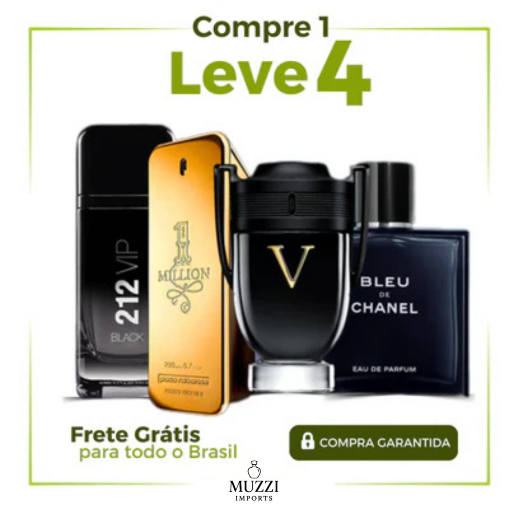 Kit 4 Perfumes Masculinos Importados (100ml cada um) - 1 million | 212 black | Invictus V| Bleu de Chanel